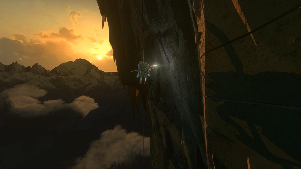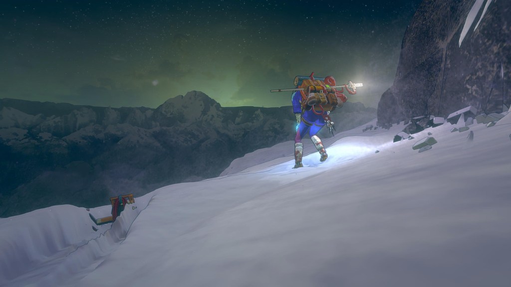 In a game about climbing up, there’s also a lot of exploration throughout Mount Kami. You’ll find flowers, berries, fish and other things to forage to keep yourself fed and watered. There’s past expeditioners who have left notes, old backpacks or even their own corpses lost to the mountain with their own poignant tales. The game has some interesting lore within, which was something I did not expect and thoroughly enjoyed and kept me moving when I lost the rag.